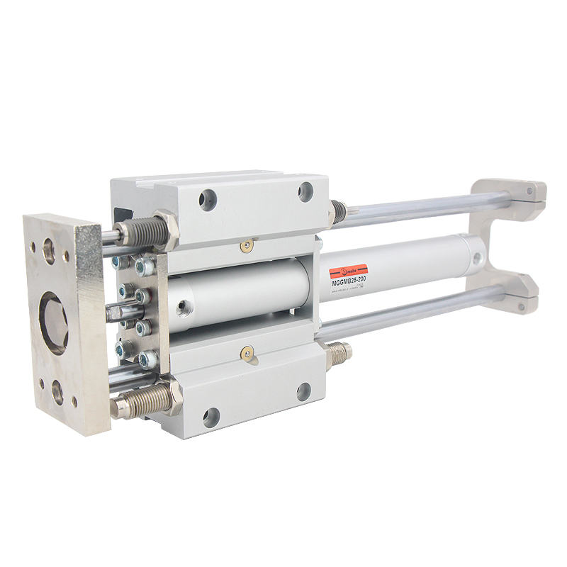 MGG帶導(dǎo)桿氣缸內(nèi)置液壓緩沖器,緩沖效果佳;附有行程調(diào)整機(jī)構(gòu),調(diào)整行程便捷;耐橫向負(fù)載能力強(qiáng);MGG帶導(dǎo)桿氣缸的不回轉(zhuǎn)精度高;導(dǎo)向桿的軸承可選擇滑動(dòng)軸承或球軸承,多種可選,形式多樣。