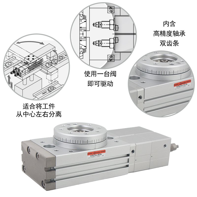5、MSZA旋轉氣缸適合將工件從中心左右分離;