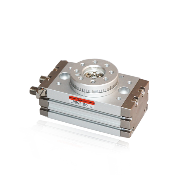齒輪式旋轉(zhuǎn)缸:氣壓力推動(dòng)活塞帶動(dòng)齒條作直線(xiàn)運(yùn)動(dòng),齒條推動(dòng)齒輪作回轉(zhuǎn)運(yùn)動(dòng),由齒輪軸輸出力矩并帶動(dòng)外負(fù)載擺動(dòng)。齒輪齒條式擺缸有CRJ、CRJU(缸大小代號(hào)0.5、1mm),CRA1(缸徑30~100mm標(biāo)準(zhǔn)型)、CRQ2(缸徑10~40mm薄型)、MSQ(缸徑10~200mm擺動(dòng)平臺(tái))系列可供選擇。