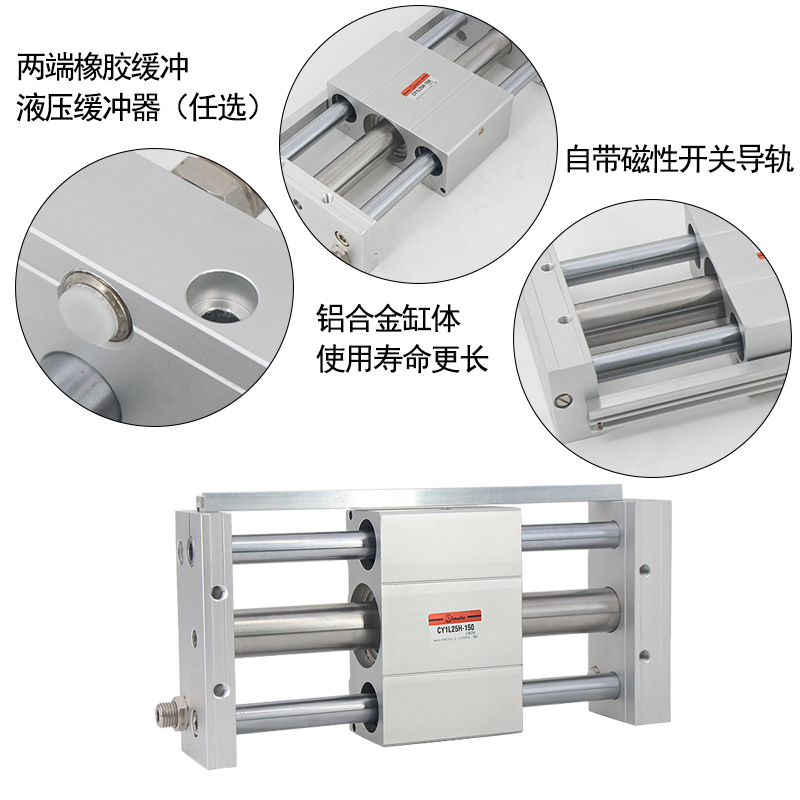 1、斯麥特生產(chǎn)的CY1L滑尺型(球軸承)無桿氣缸沒有普通氣缸的剛性活塞桿,它利用活塞直接或間接