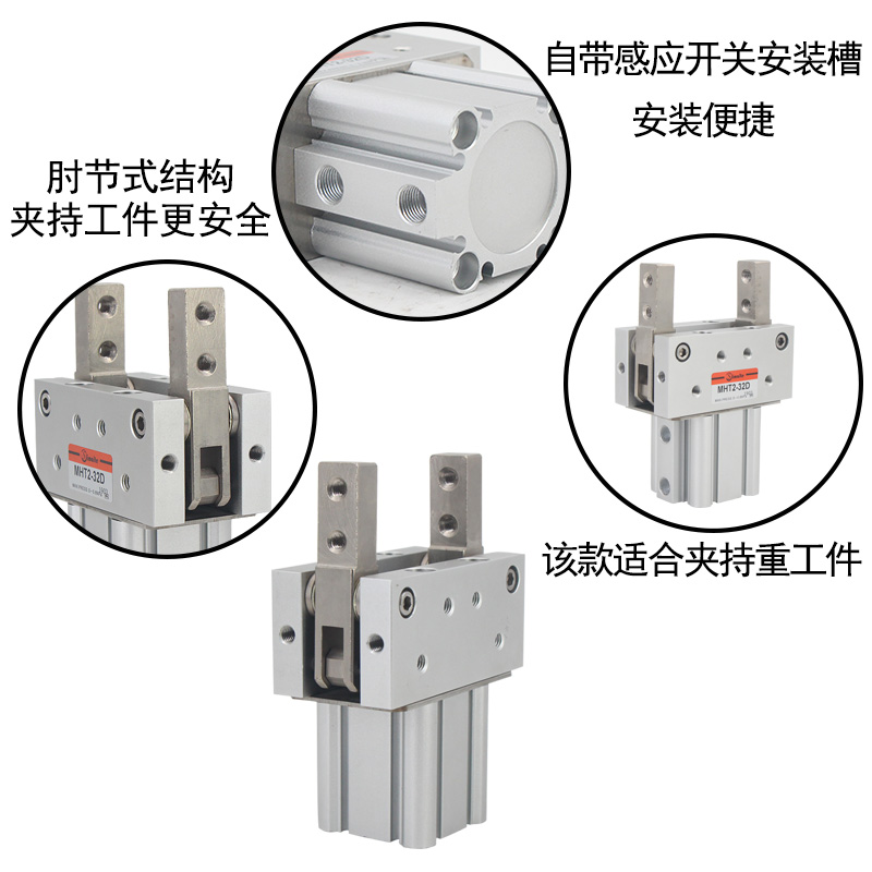 2、MHT2肘節(jié)式結構,就算是突然失去壓力,手指一樣也能夾持工件;