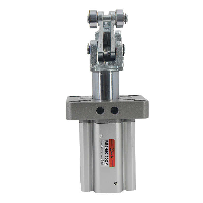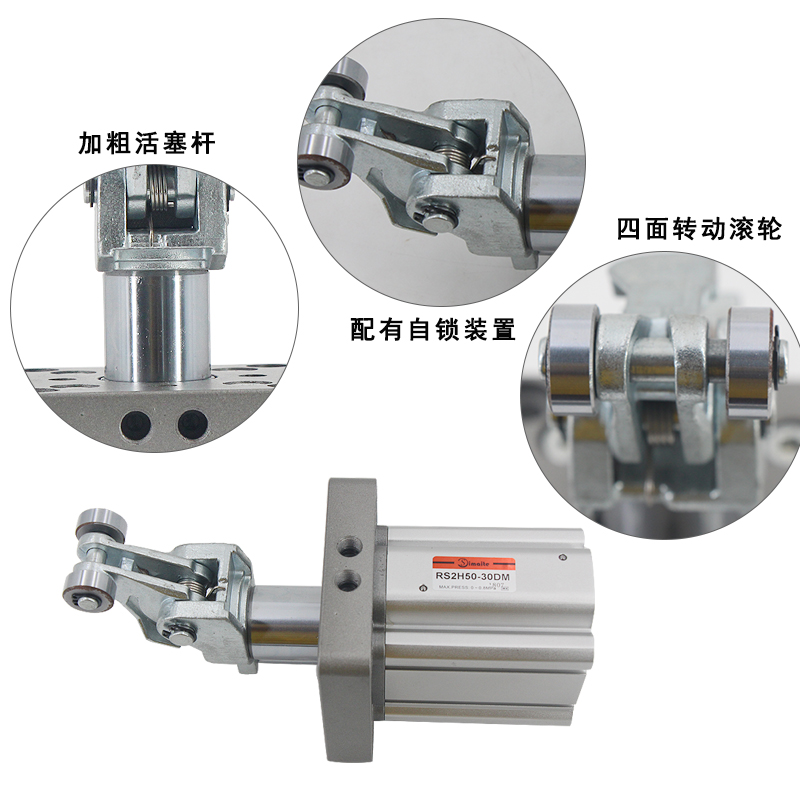 3、杠桿式滾輪結(jié)構(gòu)阻擋氣缸配有自鎖裝置,阻擋氣缸可防止搖臂回彈對(duì)被阻擋物體的回推;
